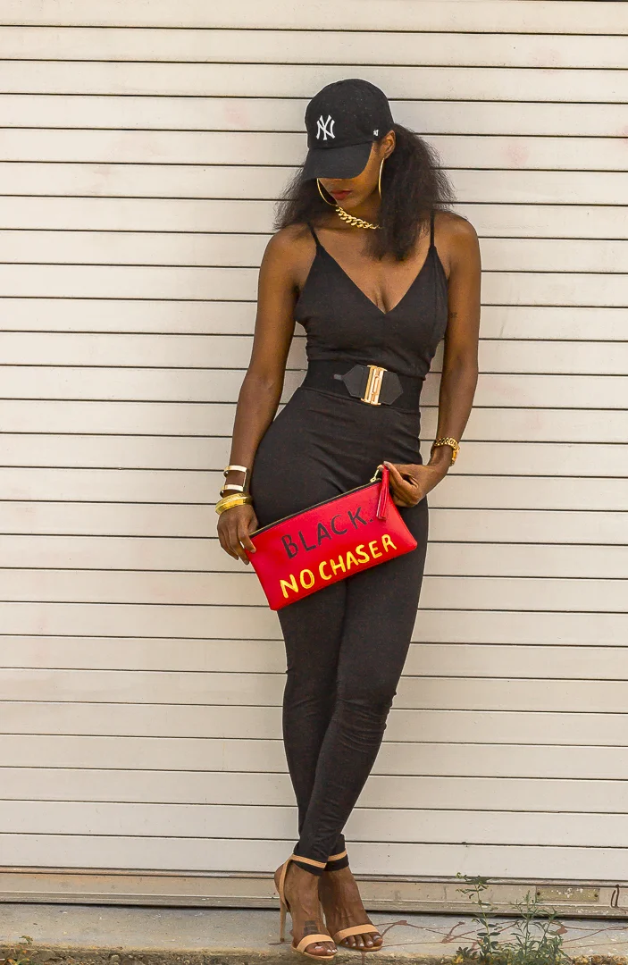 Outfit Details: Black No Chaser Clutch Bag // Pardon My Dopeness Clutch Bag // Croc Triangle Clutch Bag // Mandy Black Knitted Jumpsuit // Switch The Scene Grey Tank Dress // Landen Heels // Stan Smith Adidas //